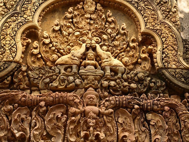 毗濕奴娶親,大象在為祂灑水淨身(下為大鵬金翅鳥--Garuda)。